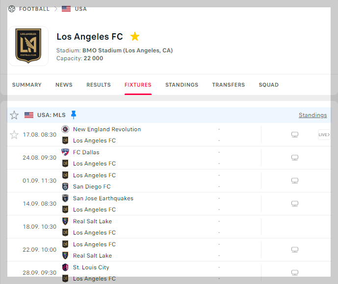 9월 1일: vs San Diego FC (홈, BMO Stadium) — 홈 데뷔 유력